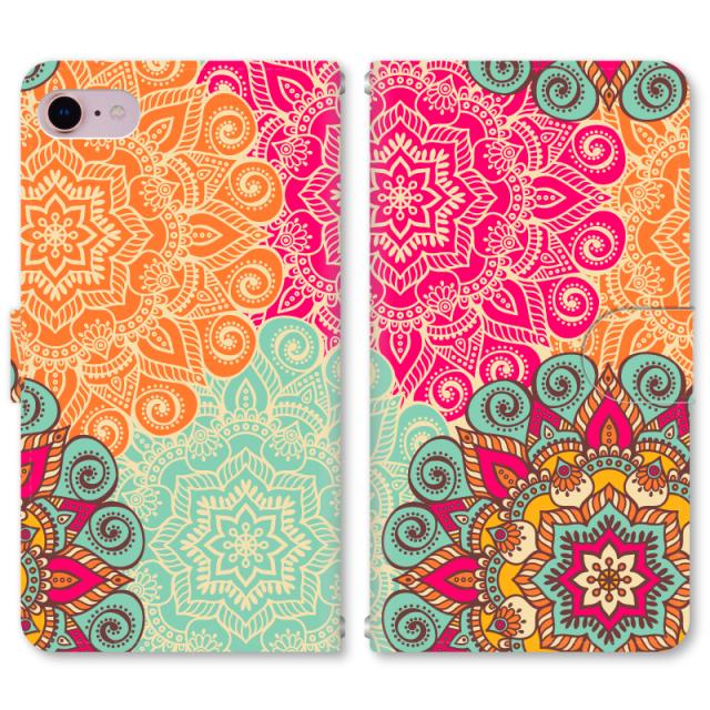 スマホケース 手帳型 iPhone13 iPhoneSE2 アイフォン 8 aquos sense GooglePixel xperia galaxyなど多機種制作対応 m2173_マンダラA
