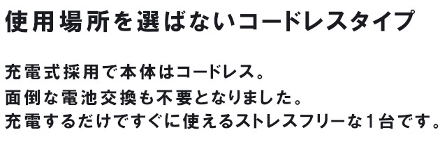 邪魔なコードを排除し、面倒な乾電池の交換も不要となりました。