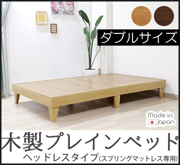 木製プレインベッド ヘッドレスタイプ ダブル ダブルベッド フレームのみ ベッド ベッドフレーム レッグタイプ