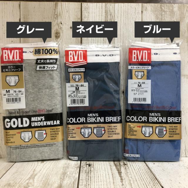 【メール便発送可】B.V.D.カラービキニブリーフ(M L) グレー ネイビー ブルー メンズ BVD 前あき 単品 下着 男性 紳士肌着 アンダーウェア パンツ ボトムス コットン