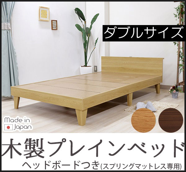 木製プレインベッド 棚コンセント付きタイプ ダブル ダブルベッド フレームのみ ベッド ベッドフレーム レッグタイプ