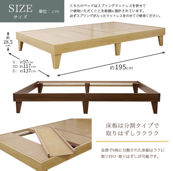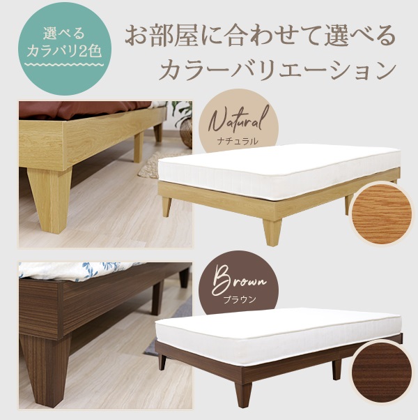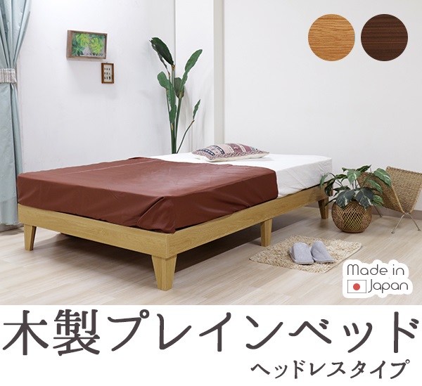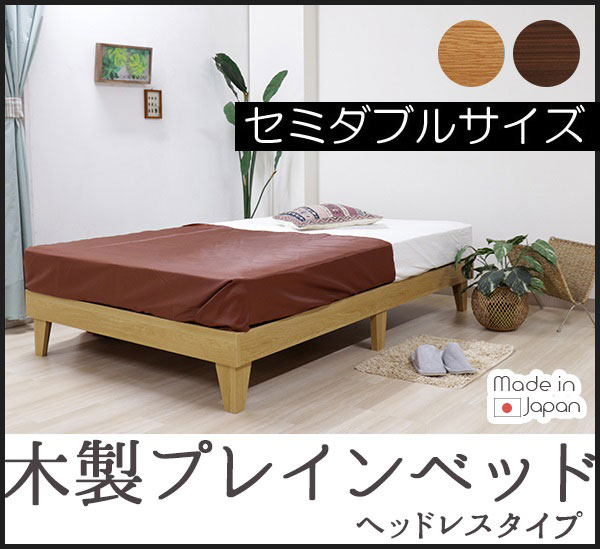 木製プレインベッド ヘッドレスタイプ セミダブル セミダブルベッド ポケットコイルマットレス付き ベッド ベッドフレーム レッグタイプ