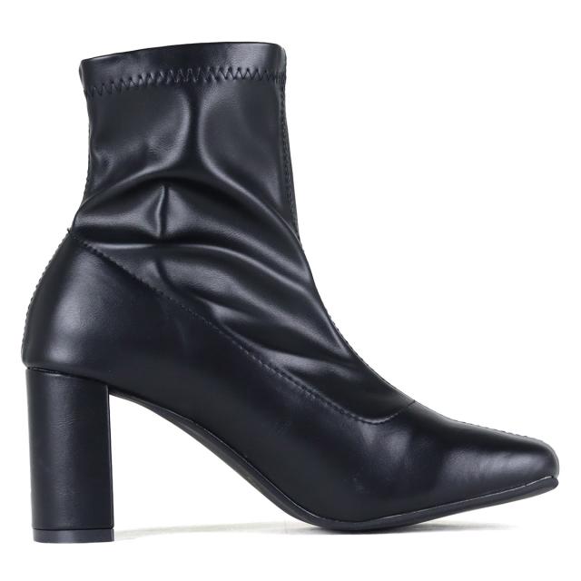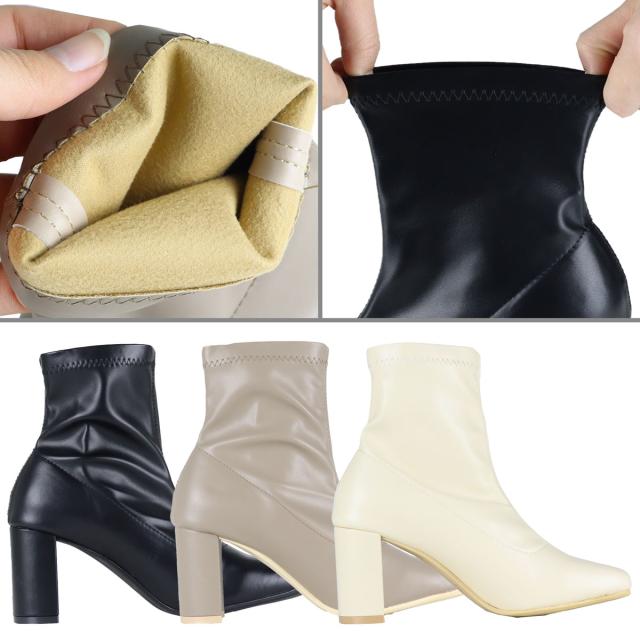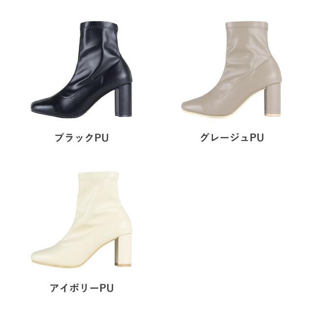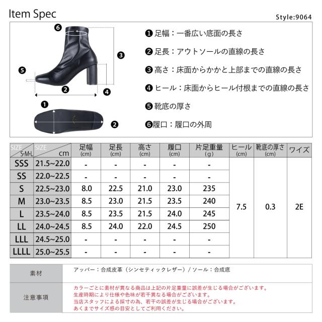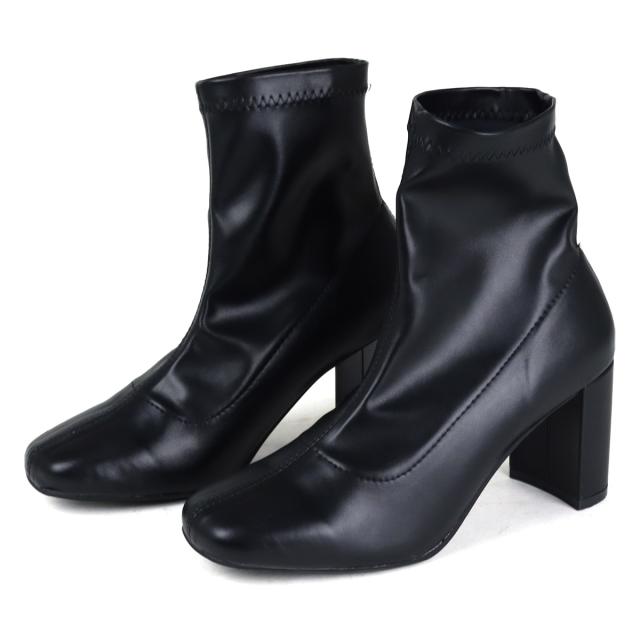ブーツ ショートブーツ レディース ストレッチブーツ 厚底 7.5cmヒール 靴 スクエアトゥ セットバックヒール 美脚 脚長効果 痛くない 歩きやすい シンプル 黒 22.5cm〜24.5cm ブラック LiBERTYDOLL No.9064