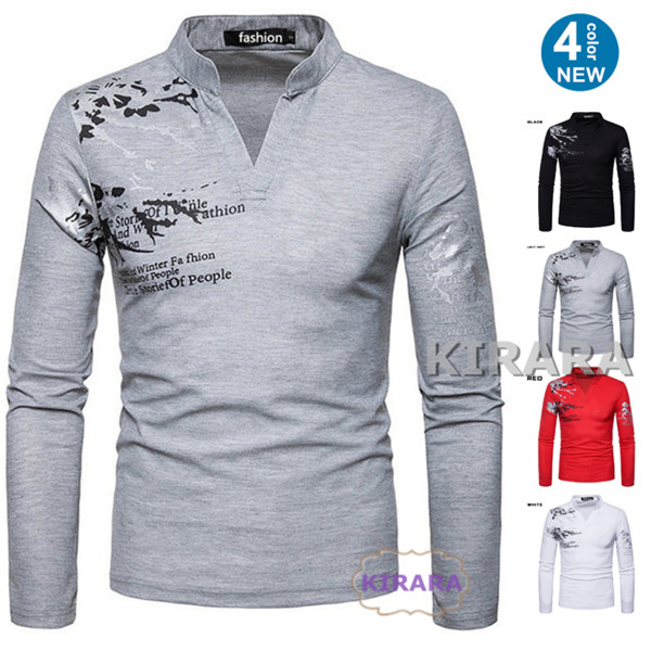 Tシャツ メンズ 長袖 ポロシャツ カジュアル 立ち襟 柄 ゴルフウェア Vネック スポーツ アウトドア 運動 polo ポロ 春 秋 トップス スウェット おしゃれ