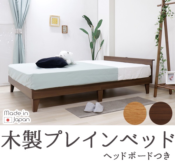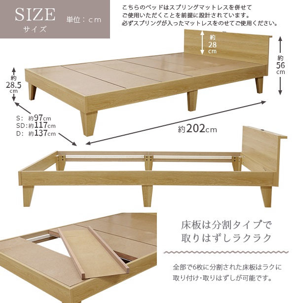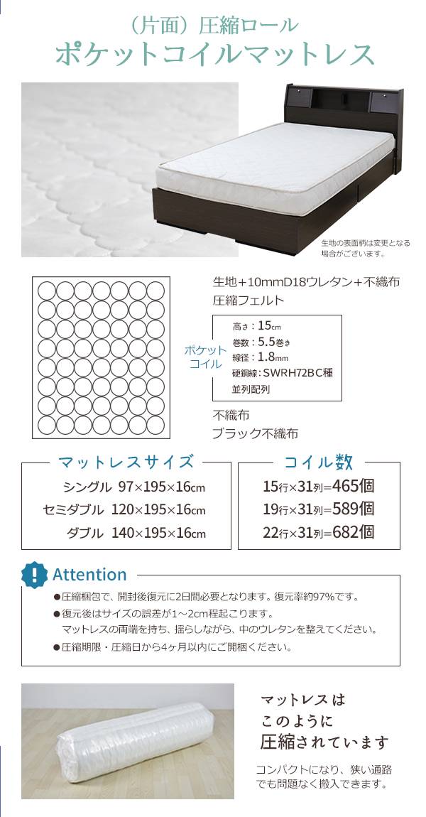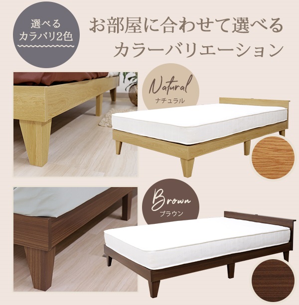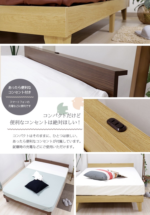 木製プレインベッド 棚コンセント付きタイプ シングル シングルベッド ポケットコイルマットレス付き ベッド ベッドフレーム レッグタイプ
