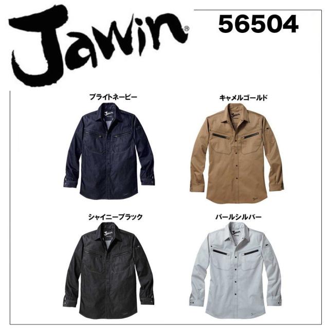 自重堂 56504 ストレッチ長袖シャツ SS〜5L ストレッチ ジャウィン Jawin (社名ネーム1か所無料)