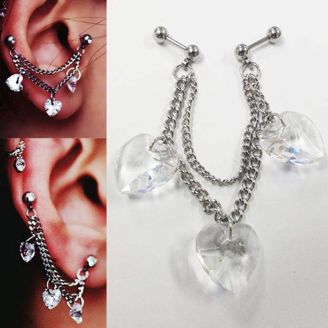 [ 18G ボディピアス ] クリスタルトリプルハートダブルバーベルチャーム ボディーピアス ストレートバーベル 18ゲージ 1mm インダストリアル ステンレ メンズ レディース チェーンピアス 軟骨 ヘリックス トラガス 鎖 2連 3個 クリスタル ビーズ 可愛い 2本 繋ぐ つなぐ