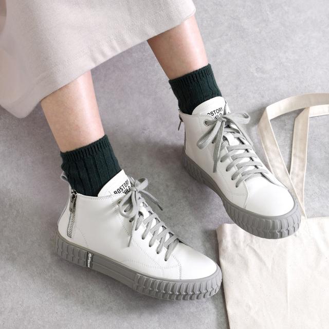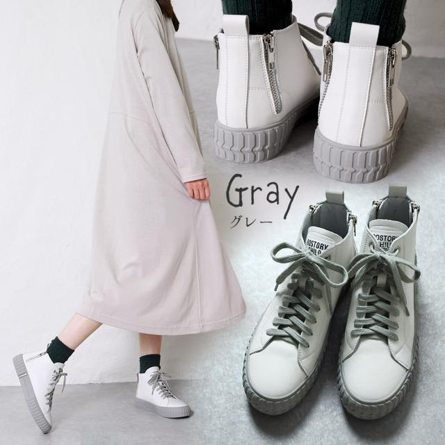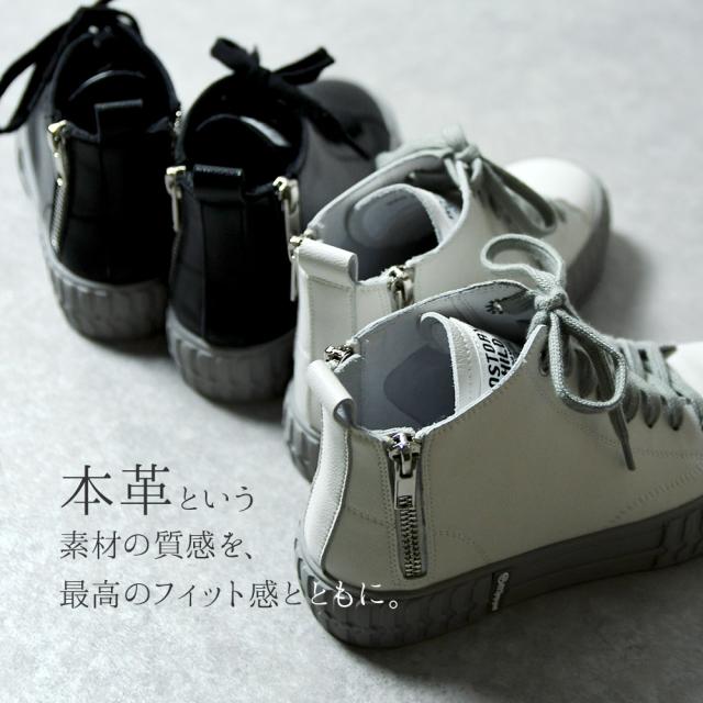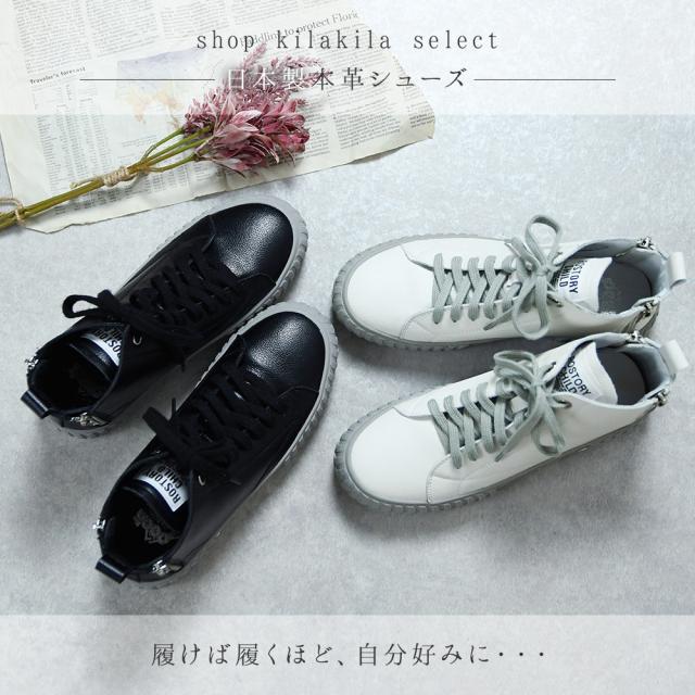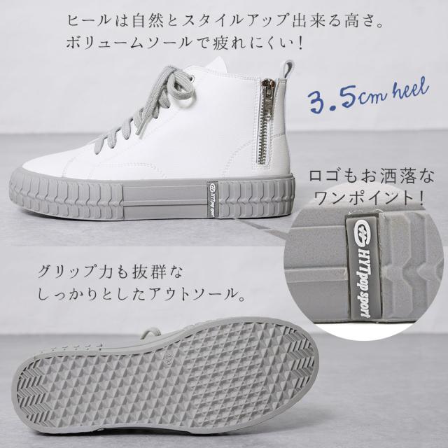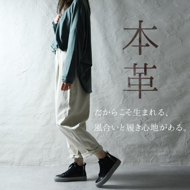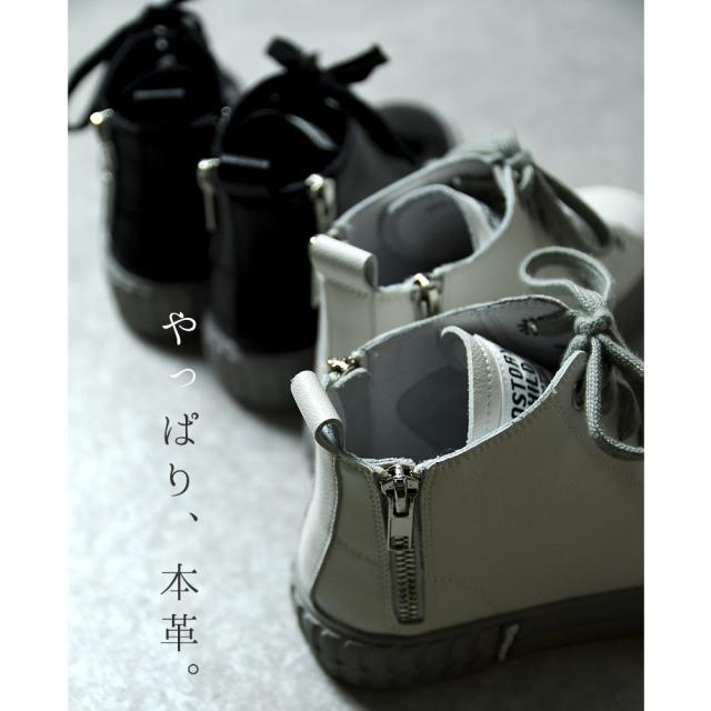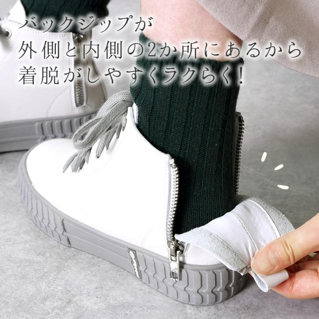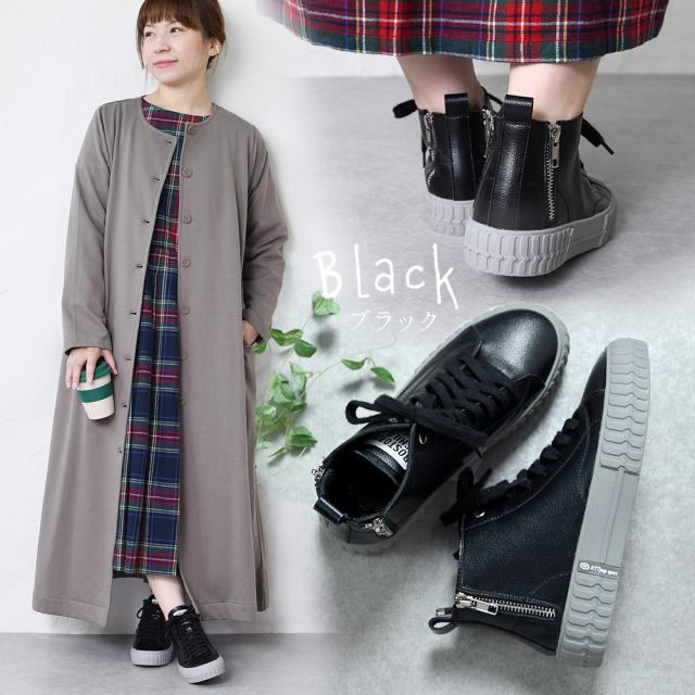 本革 スニーカー レディース 日本製 厚底 バックジップ ハイカット おしゃれ レザー 歩きやすい 黒 ブラック 痛くない レースアップ オールシーズン かわいい 靴 春新作