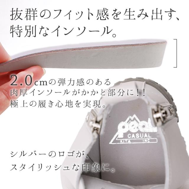 踵に2カ所ジッパーがついているのも珍しいデザインで、脱ぎ履きしやすくなります。