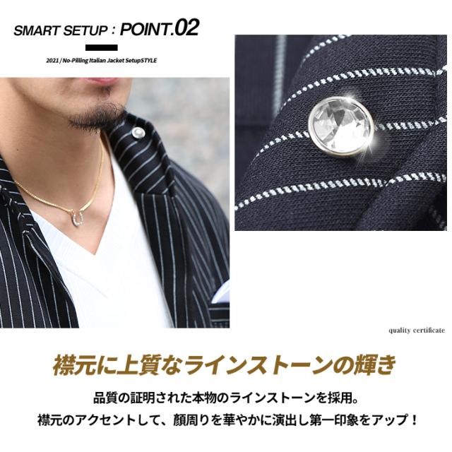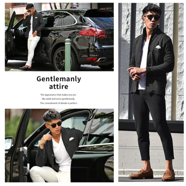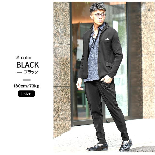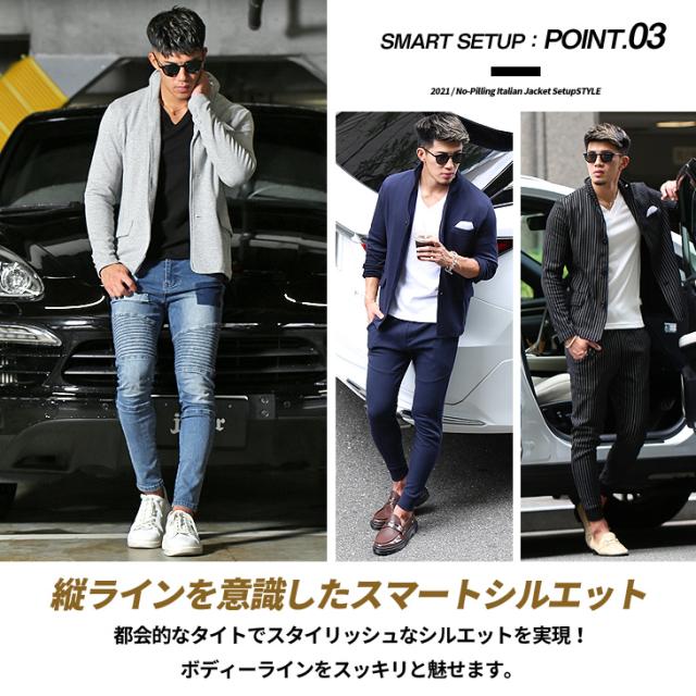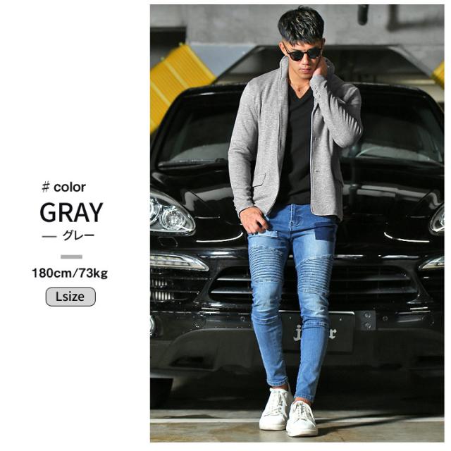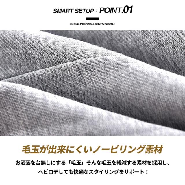 『スウェットイタリアンカラージャケット』ラフでも決まるイタリアンカラージャケットが登場。【オトナの男の在り方】オトナの男は頑張らなくともカッコ良くキマる、そんな存在。優れた伸縮性、滑らかな肌触りのスウェット素材を使用し、肩の力が抜けた余裕のある大人を演出。また細身のシルエットが、スタイリッシュな見栄えに仕立ててくれ、ラフさの中にスタイリッシュな印象を。立ち襟のイタリアンカラーは、あなたの男らしさをより一層表現。ピリング試験と呼ばれる毛玉のできる度合いを評価する試験を通過した、"毛玉が出来づらい"素材を使用し、いつまでも綺麗にカッコ良い見た目を。ラフなのにカッコ良い、それがオトナの男の在り方。