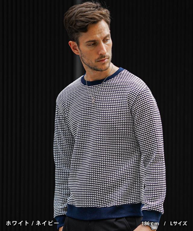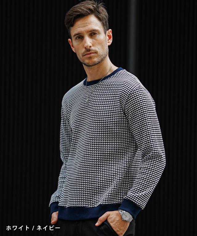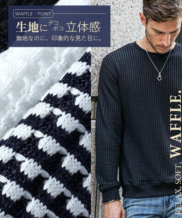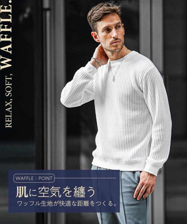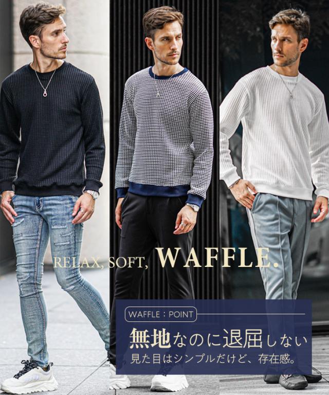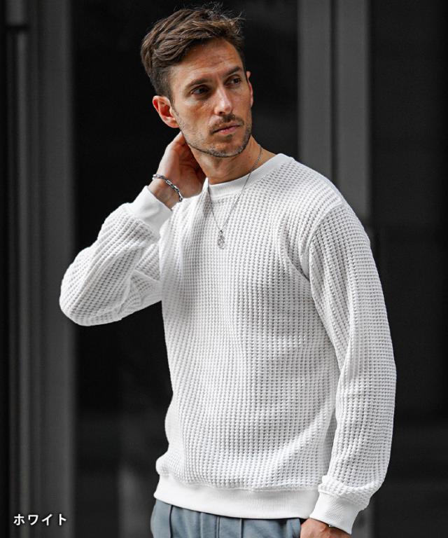 カラーが織りなすハーモニーを楽しむワッフル素材のトレーナー。