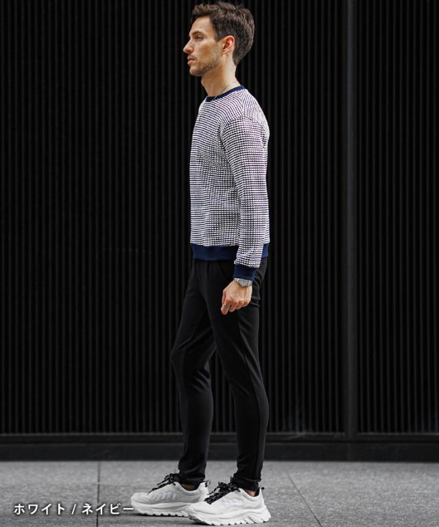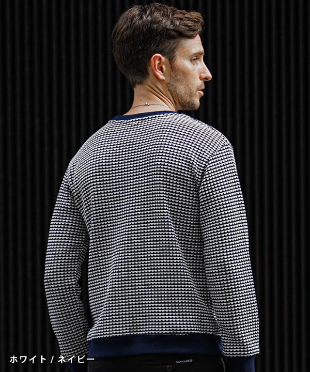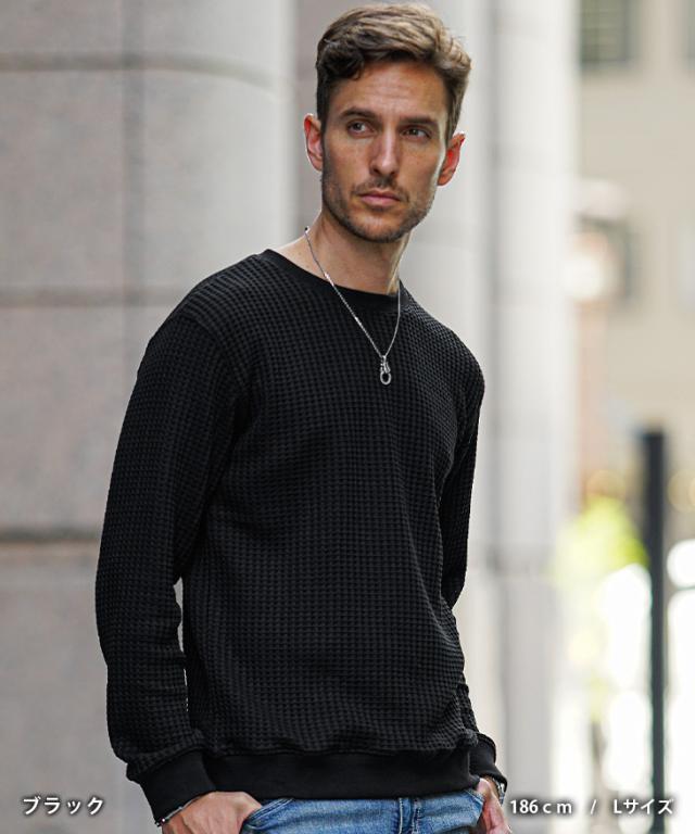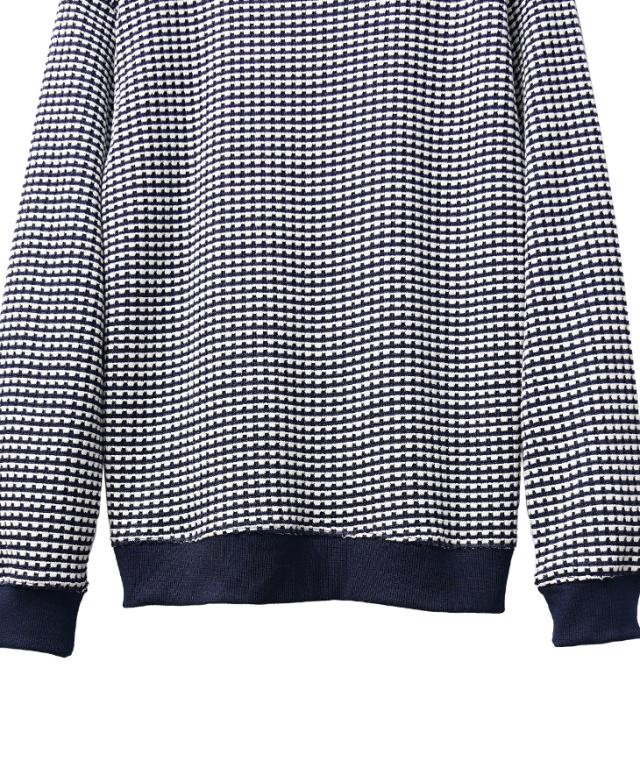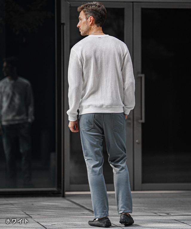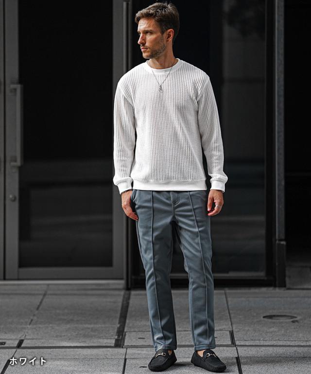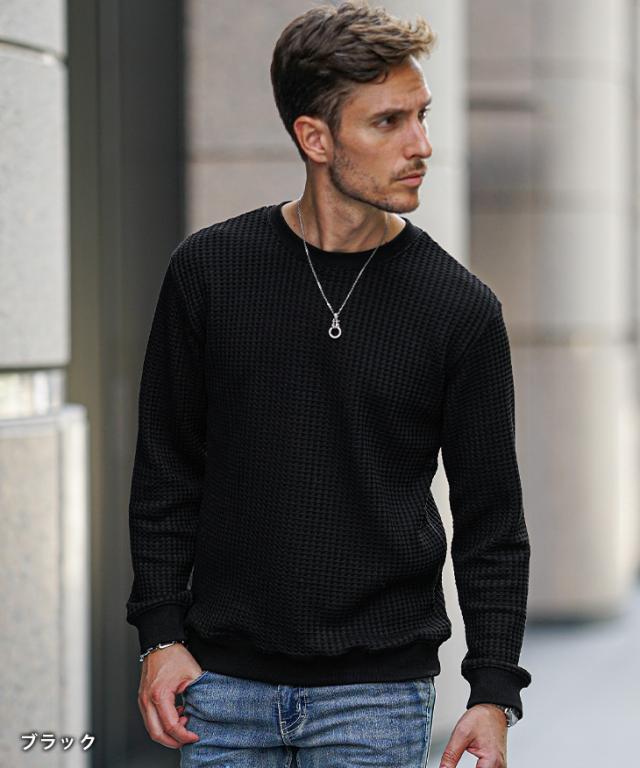 カラーが織りなすハーモニーを楽しむワッフル素材のトレーナー。