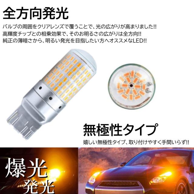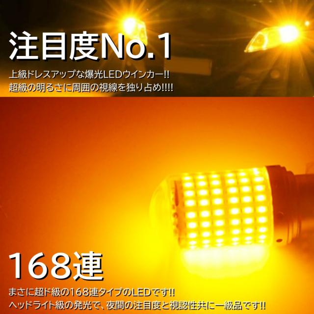 爆光LED 168SMD T20 S25シングル 150度 180度 LEDウインカー アンバー ハイフラ防止 高輝度SMD ピンチ部違い対応 2個セット