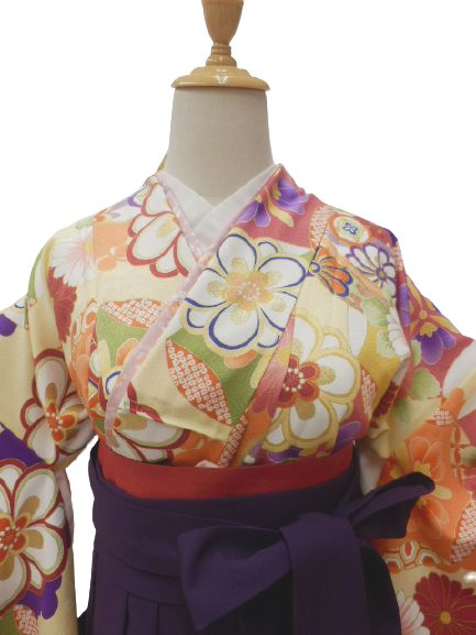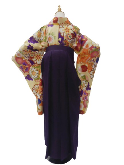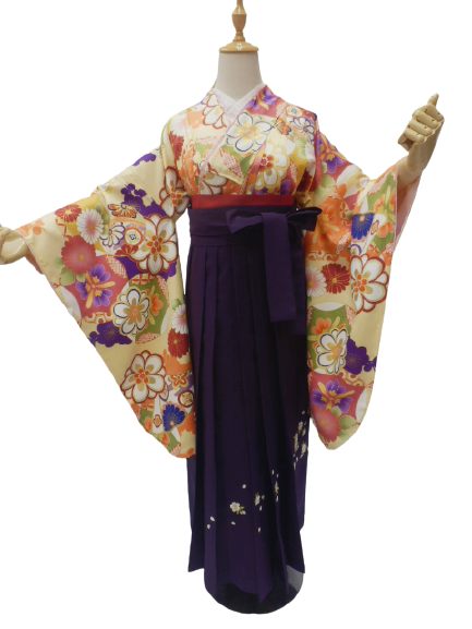 セット内容:小振袖・袴・半巾帯・長襦袢・草履・腰紐3本・衿しん・伊達締め2本・前板