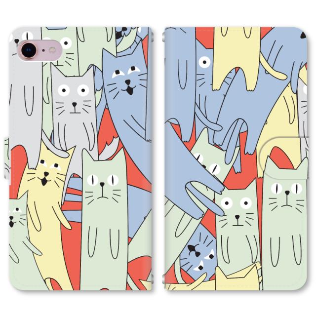 スマホケース 手帳型 iPhone13 iPhoneSE2 アイフォン 8 aquos sense GooglePixel xperia galaxyなど多機種制作対応 m3013_ねこB