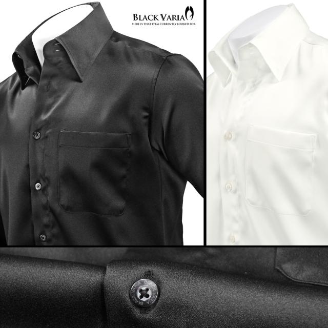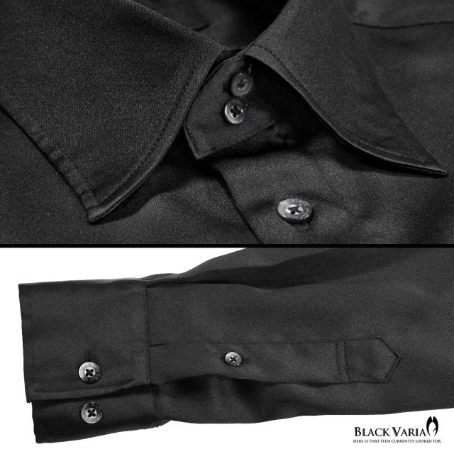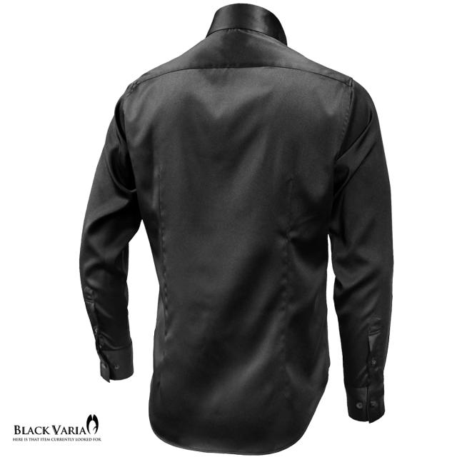 サテンシャツ ドレスシャツ ドゥエボットーニ パウダーサテン レギュラーカラー 無地 パーティー メンズ mens(ブラック黒) 201355