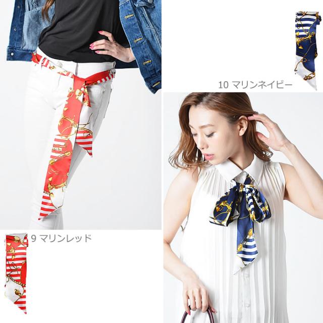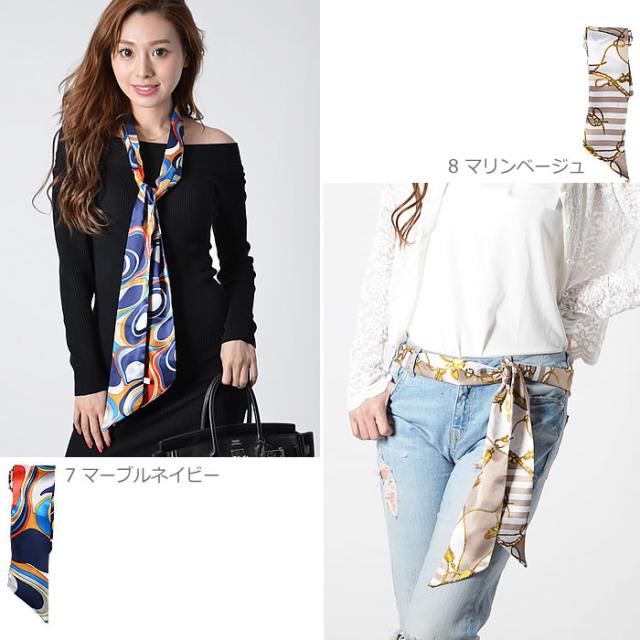 | 商品説明 | 話題の7cm×163cmのスリムロングサイズ!テロッとしたサテン素材なので、ネクタイ風に巻いたり、バッグにつけたり使い方は無限大。ちょっぴりレトロでマリンな柄で、コーデの主役にバッチリのアイテムです。シンプルコーデ使えるマルチなスカーフはコーデ無限大♪サテンのような艶感のある大人っぽい素材なので、フォーマルな場面にも使えます。 |