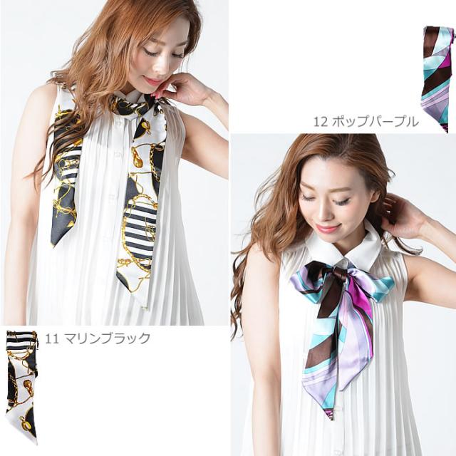 テロッとしたサテン素材なので、ネクタイ風に巻いたり、バッグにつけたり使い方は無限大。