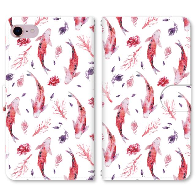 スマホケース 手帳型 iPhone13 iPhoneSE2 アイフォン 8 aquos sense GooglePixel xperia galaxyなど多機種制作対応 m6021_水彩こい