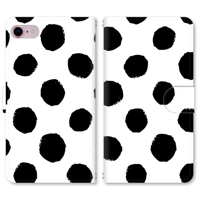 スマホケース 手帳型 iPhone13 iPhoneSE2 アイフォン 8 aquos sense GooglePixel xperia galaxyなど多機種制作対応 m6034_ドットBK