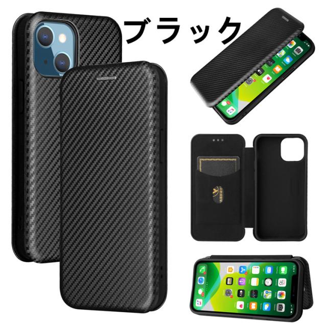 iPhone13 mini 手帳型 薄型 カーボンファイバー 炭素繊維カバー TPU 保護バンパー 財布型 マグネット式 カード収納 落下防止 ホルダ 横開き リンクストラップ付き