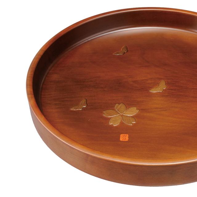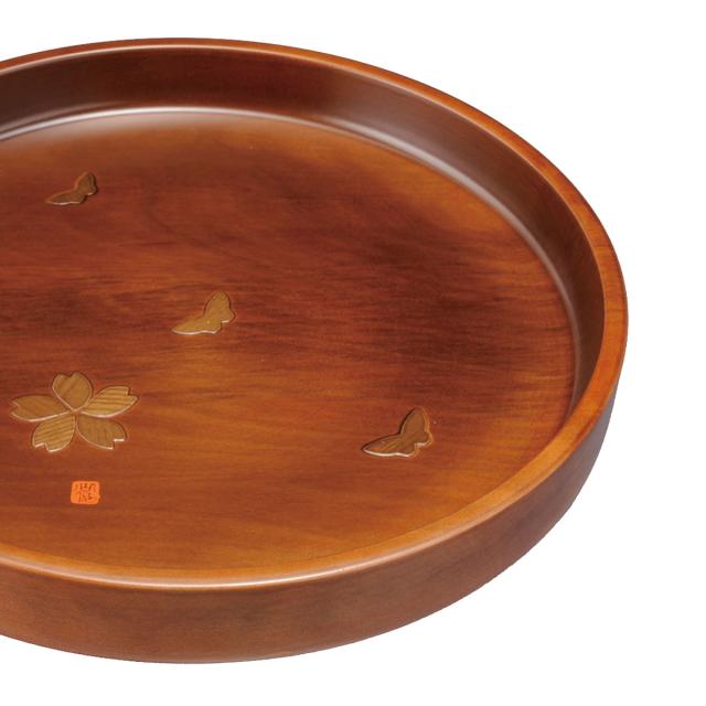 紀州塗り お盆 トレー 30cm 木製丸盆 花と蝶 おしゃれ おぼん トレイ k_name