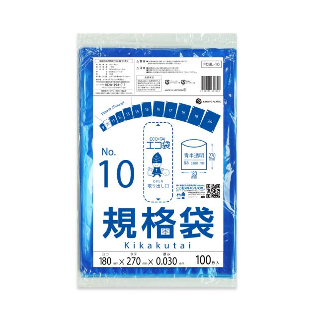 【バラ販売】FCBL-10bara 規格袋 10号 0.030mm厚 青半透明 100枚 食品衛生法 RoHS指定