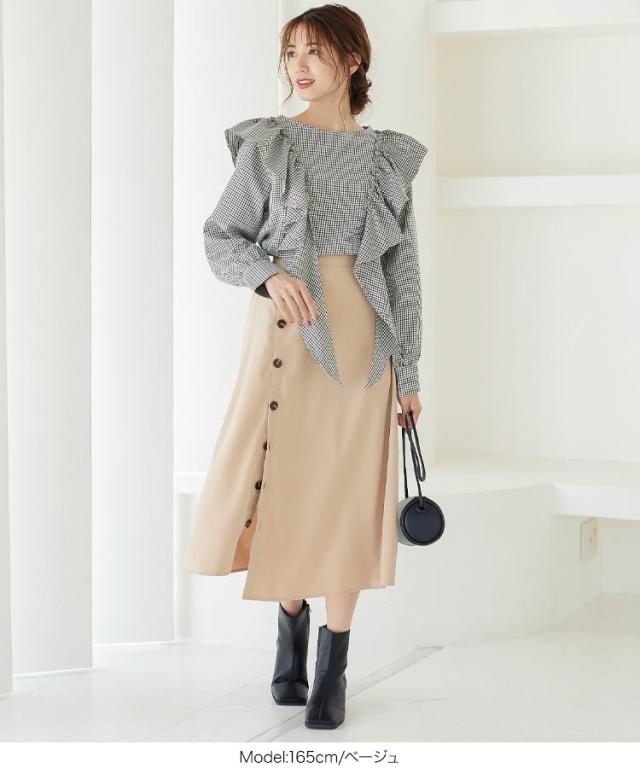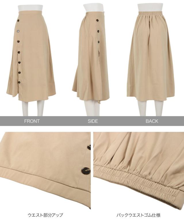 春新作 サイドボタンスリットスカート M3432 入荷済 レディース ボトムス スカート バックウエストゴム スリット ボタン 大人