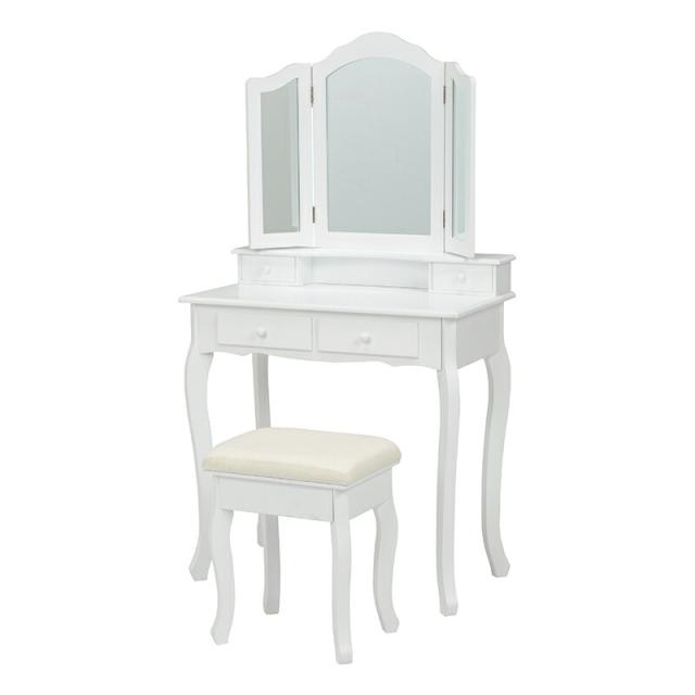 ドレッサーセット ドレッサー:(約)幅75×奥行40×高さ138cm スツール:(約)幅37×奥行28×高さ45.cm MD-6568WH 萩原 [家具 インテリア]