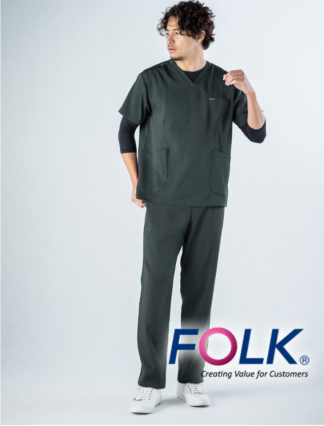 フォーク スクラブパンツ 白衣 FOLK 5025sc 白衣パンツ メンズ ストレートパンツ ユニフォーム 医師 医療用 ユニホーム 看護師 白衣 クリニック 小松マテーレ 術衣 ネイビー 上質