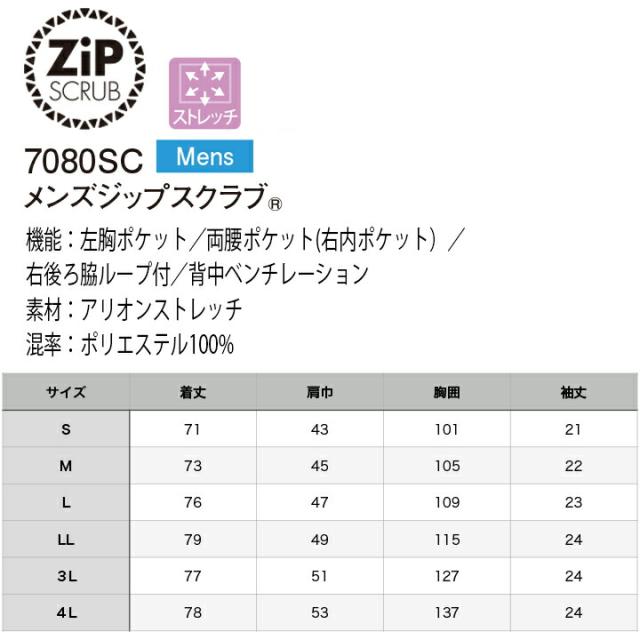 フォーク ジップスクラブ 7080sc メンズ 男性用 白衣 ユニフォーム 歯科 医師 医療用 クリニック 術衣 FOLK