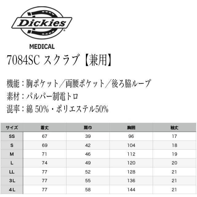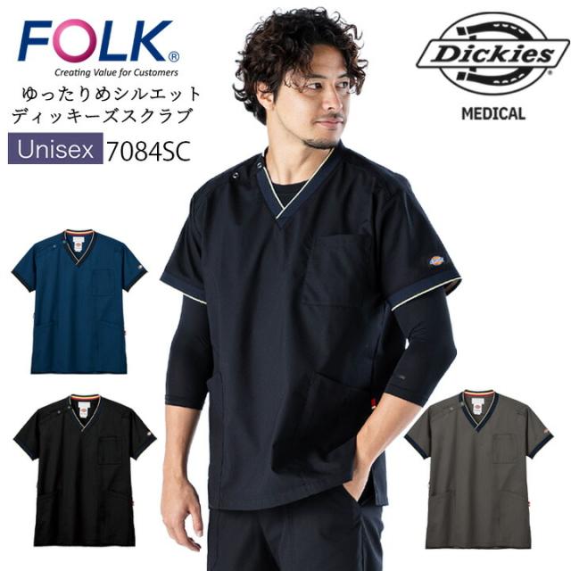 フォーク スクラブ 7084sc ディッキーズ メンズ 男性用 ユニフォーム エステ服 医療 歯科医 ユニホーム 術衣 医療用 看護師 クリニック FOLK