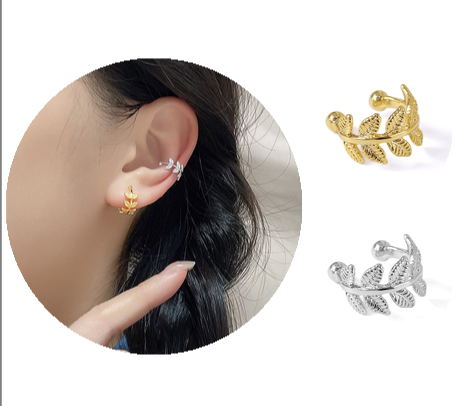★ 片耳用 葉っぱ柄 イヤーカフ ★ レディース ジュエリー 耳に挟む スタッド クリップ ピアス イヤリング アクセサリー 金 銀 N53-1