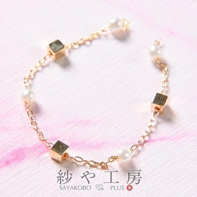 【サイズ】チェーン幅:約0.8mm パール:約3mm キューブ:約3mm