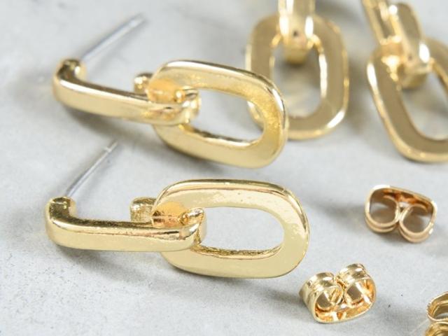 【関連キーワード】ゴールド 2ペア 4個 約2.3cm キャッチ付き 変退色防止コーティング加工済みサージカルステンレス 鎖 二連 スクエア オーバル 金 ピアス パーツ ピアス土台 アレルギー対応 アクセサリー アクセサリーチャーム 金属 金具 素材 部品 材料 資材 アルファベット シンプル アクセサリーパーツ パーツさや工房 沙や工房