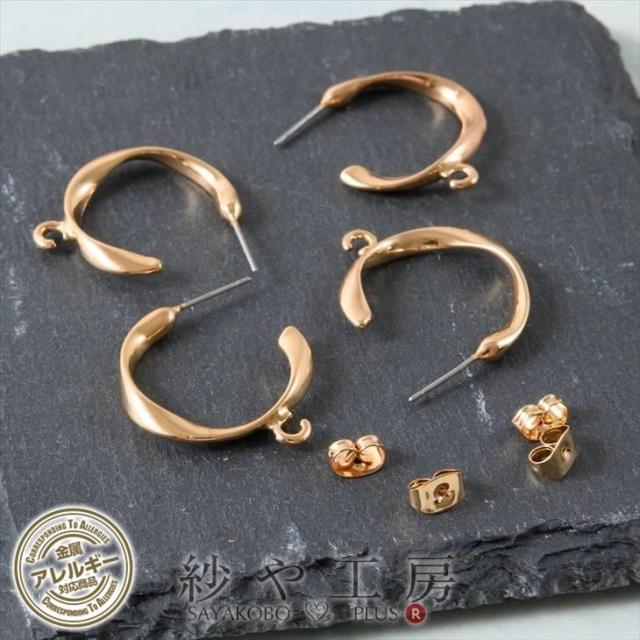 【関連キーワード】ゴールド 2ペア 4個 約2.6cm キャッチ付き 変退色防止コーティング加工済みサージカルステンレス フープ式 ひねり ゴールド 金 フープ ピアス パーツ ピアス土台 アレルギー対応 アクセサリー アクセサリーチャーム 金属 金具 素材 部品 材料 資材 シンプル アクセサリーパーツ パーツさや工房 沙や工房