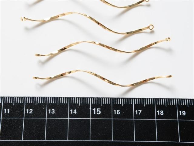 チャーム ニッケルフリー 変退色防止加工 金属アレルギー対応 4個 ねじりウェーブスティック 両カン付 ゴールド 65mm アクセサリーパーツ