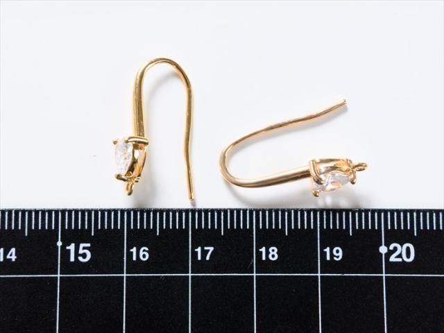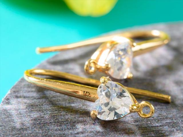 【内容詳細】ピアスパーツ 18金メッキ フックタイプ 大粒 ハート ストーン カン付 23.5mm ゴールド 1ペア 約2.4cm