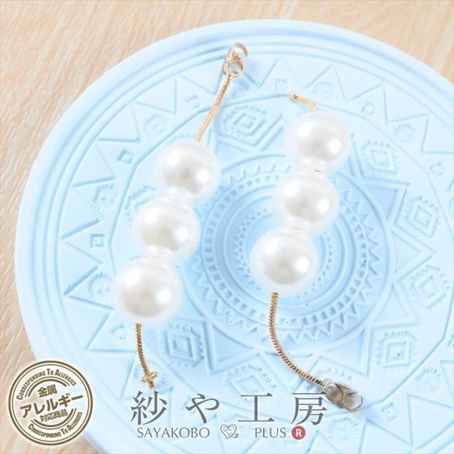 揺れるロングピアスキャッチ ニッケルフリー 金属アレルギー対応 パール トリプル ゴールド 70mm 2個 ピアスキャッチ アクセサリーパーツ