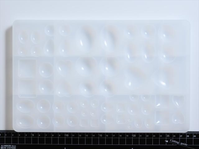 ハートやしずく、オーバル、四角形など様々なモチーフ型が26種セットになったレジン用シリコンモールドです。