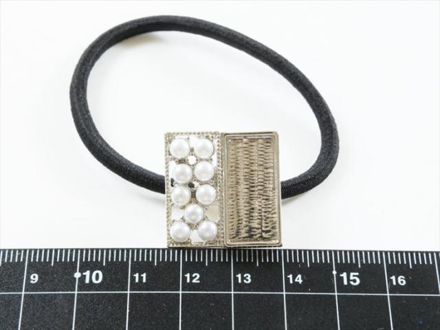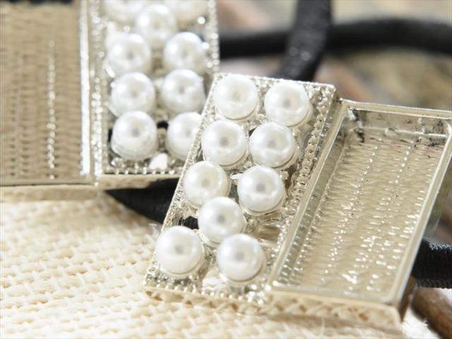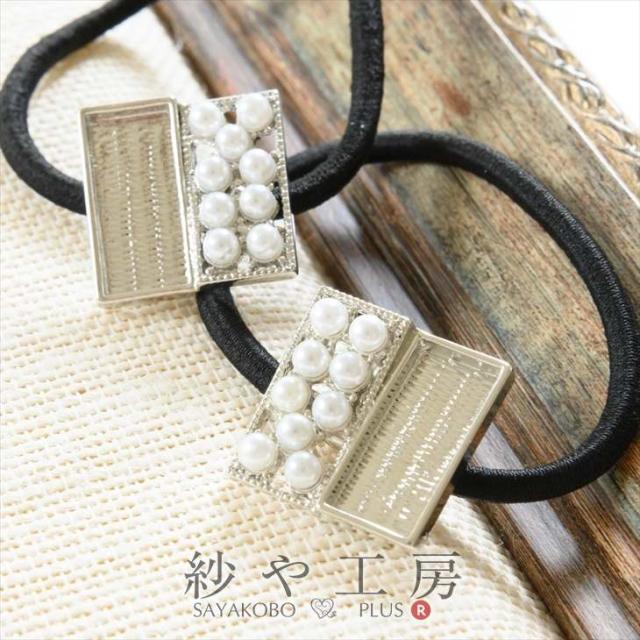 ヘアゴム ニッケルフリー 変退色防止加工済 金属アレルギー対応 ずらしスクエア パール付き シルバー 外径24mm 2個 アクセサリーパーツ