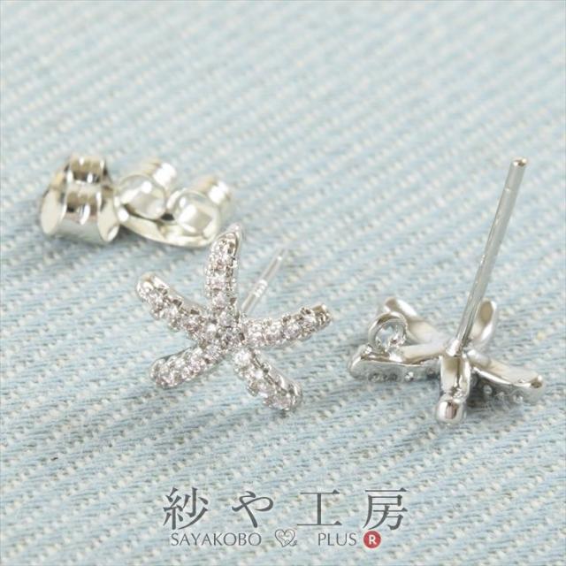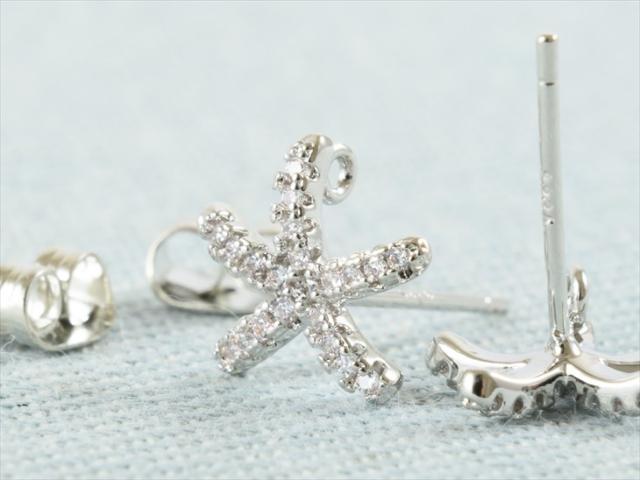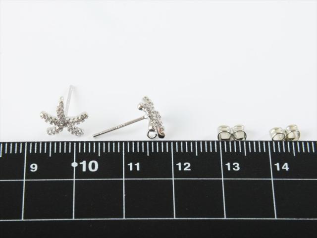 【内容詳細】ピアスパーツ ニッケルフリー ヒトデ キャッチ付き ストーン付き 10mm シルバー 1ペア 約1cm