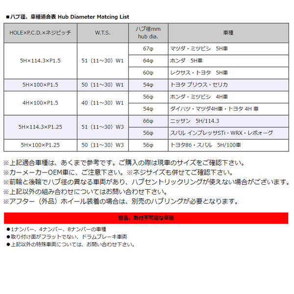 ホイールによってはハブリングを装着できない場合がございますのでご注意下さい。