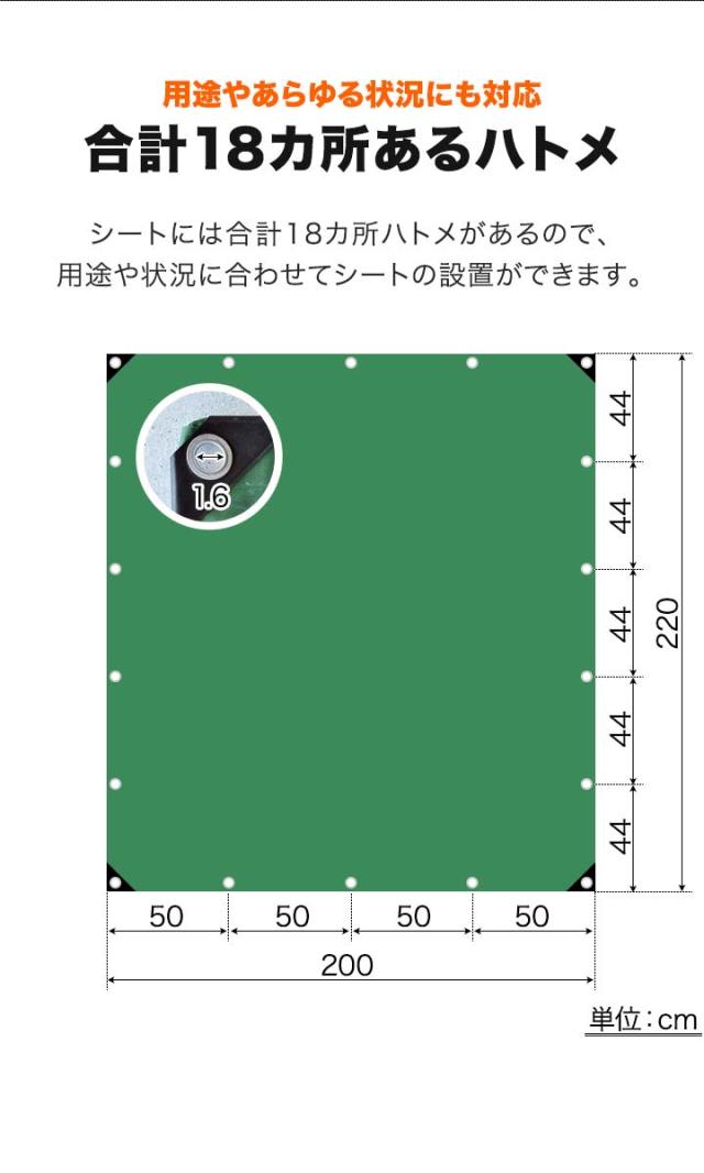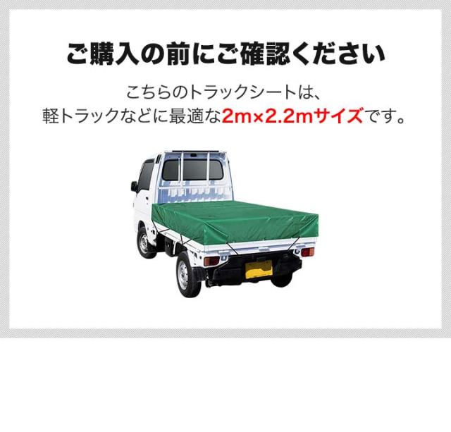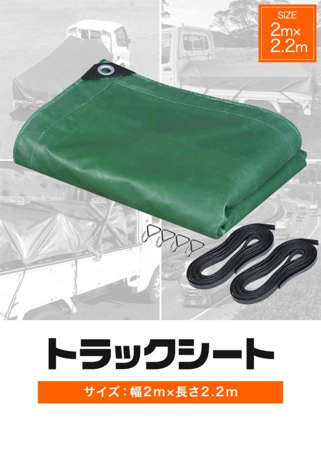 トラックシート 荷台カバー 2m×2.2m (グリーン) 厚手 軽トラック用 ゴムベルト2本・荷締めフック付き 耐久性・防水性 エステル帆布 荷台シート シートカバー 大型シート 軽トラ 平シート 平ボディ 荷締・荷止め用品 帆布・シート 送料無料