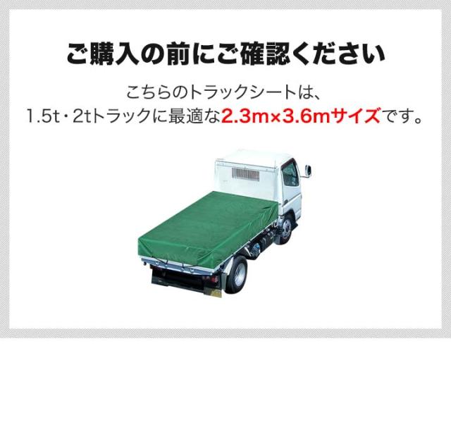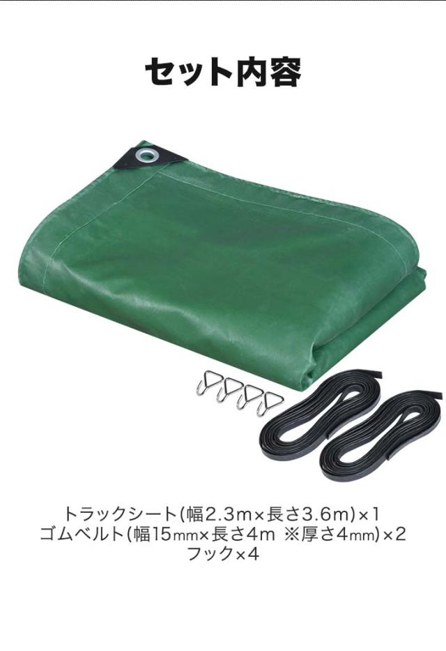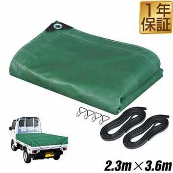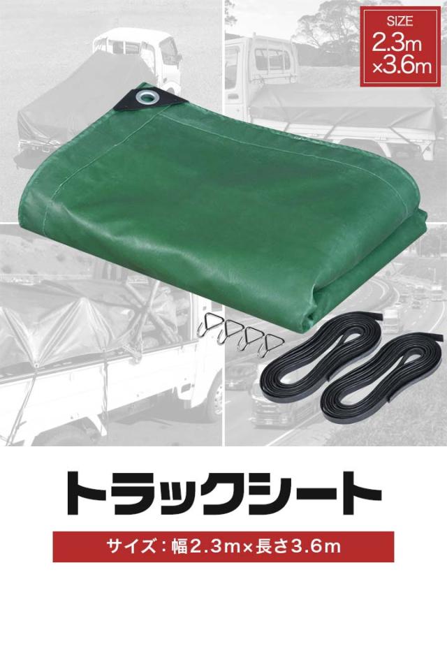 トラックシート 荷台カバー 2.3m×3.6m (グリーン) 厚手 1t 1.5t 2.5 小型トラック用 ゴムベルト2本・荷締めフック付き 耐久性・防水性 エステル帆布 荷台シート シートカバー 大型シート 平シート 平ボディ 荷締・荷止め用品 帆布 送料無料
