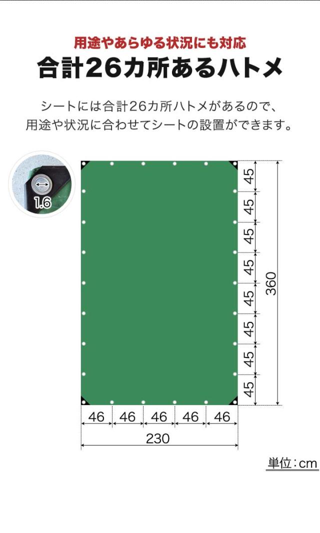 | サイズ: トラックシート : (約)幅2.3m×長さ3.6m ※ハトメ内径 (約)16mm ゴムベルト : (約)幅15mm×長さ4m ※厚さ(約)4mm |