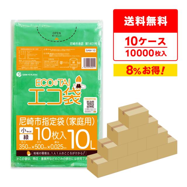 【まとめて10ケース】SAM-10-10 尼崎市指定袋 家庭用 10リットル 0.025mm厚 緑 10枚x100冊x10箱/ ゴミ袋 ごみ袋 送料無料
