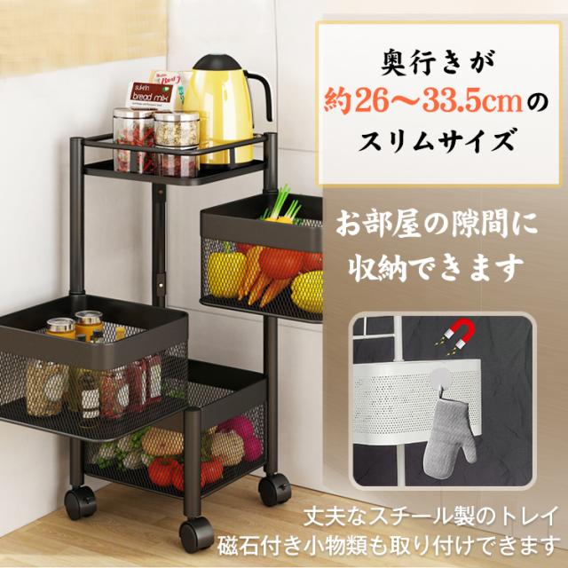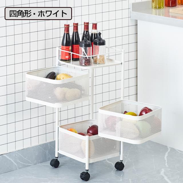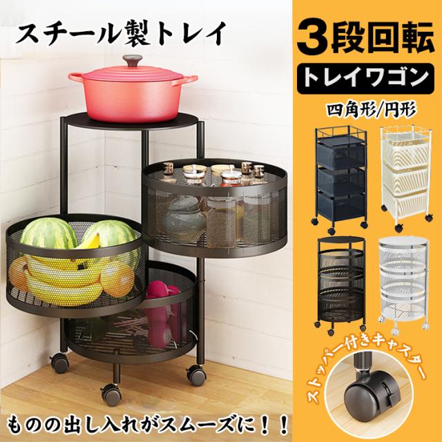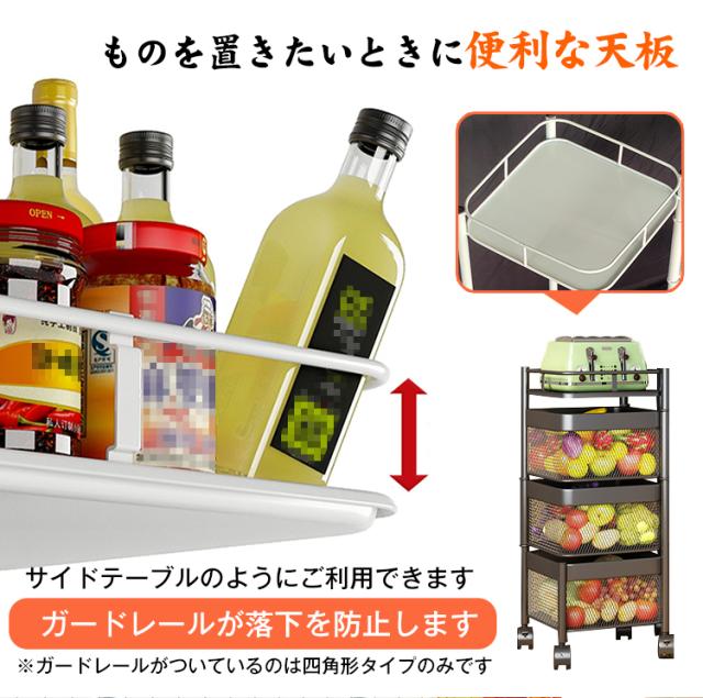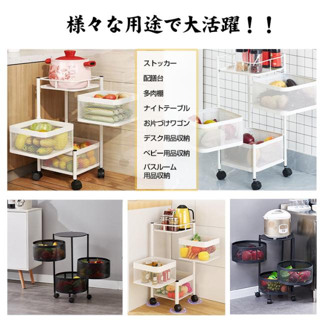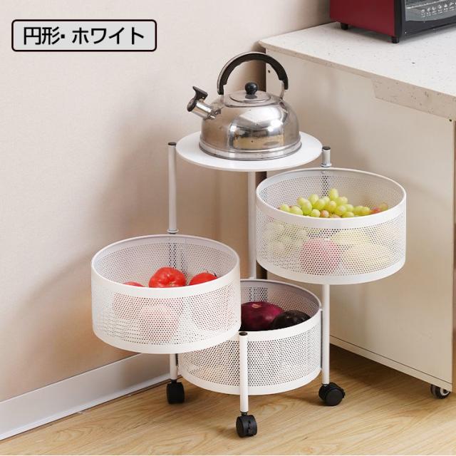 新生活 キッチンワゴン 回転 多肉棚 バスケットトローリー ツールワゴン 天板 キャスター付き 3段 キッチンカウンター インテリア 収納 小物 庭 植物 ny409