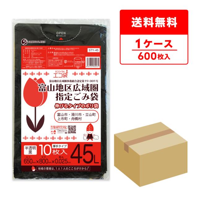 富山地区広域圏指定ごみ袋 45リットル 半透明黒 65x80cm 0.025mm厚 10枚x60冊 STY-45/ ゴミ袋 ごみ袋 家庭用 45l 送料無料
