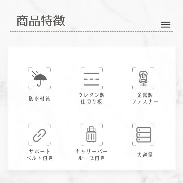 旅行にも最適、キャリーバーループ付きなので固定出来て大変便利です。